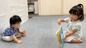 手遊びが終わると、2歳児さんは絵本を読み始めました。