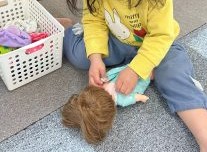 お人形の着せ替えを繰り返し楽しむお子さま。