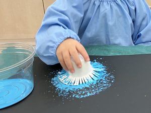 保育者と一緒に模様が色づく様子を楽しんだりします。