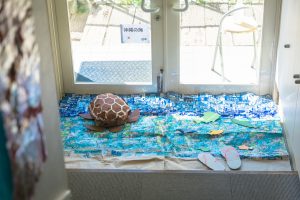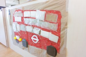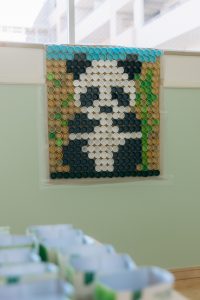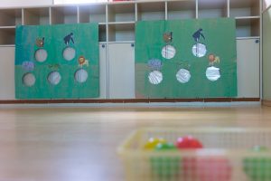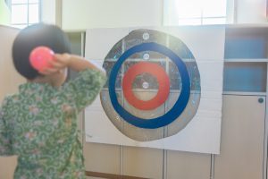乳児クラスのお友達は、動物の絵が描かれた小さな的です。