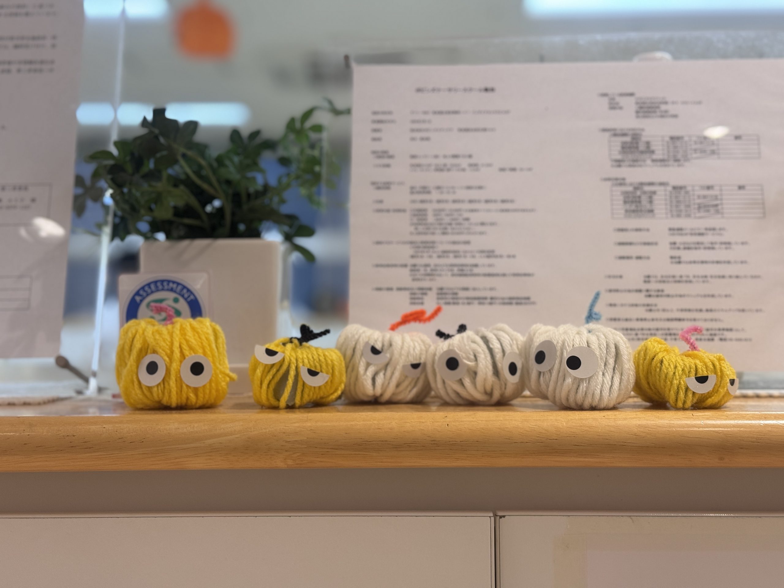今月末はハロウィンですね✨ 4・5歳児のお子様と、毛糸でハロウィンの飾りを作りました。