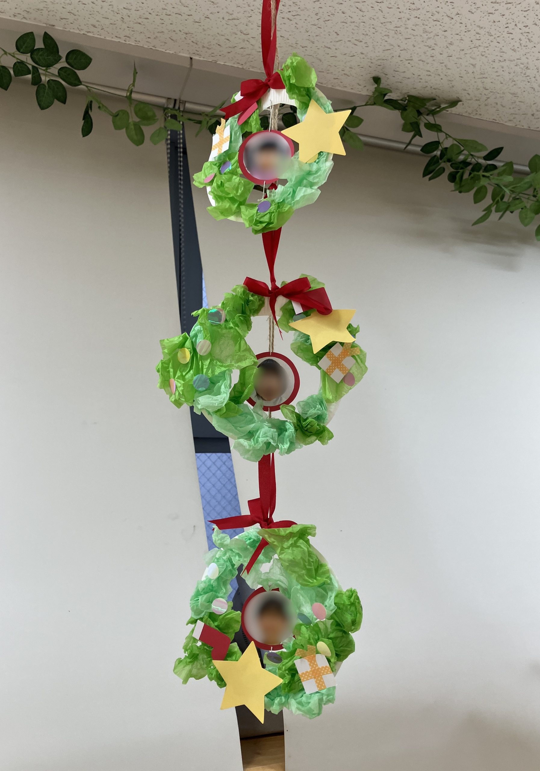 会場は各クラスのお子様たちの🎄クリスマスの装飾で彩られていました。