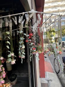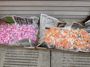 道中で花びらやお花を干している