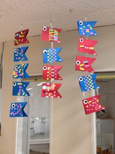 そして…ひと際ほっこりするのが、各所に飾られたお子様たちのこどもの日制作の数々です!