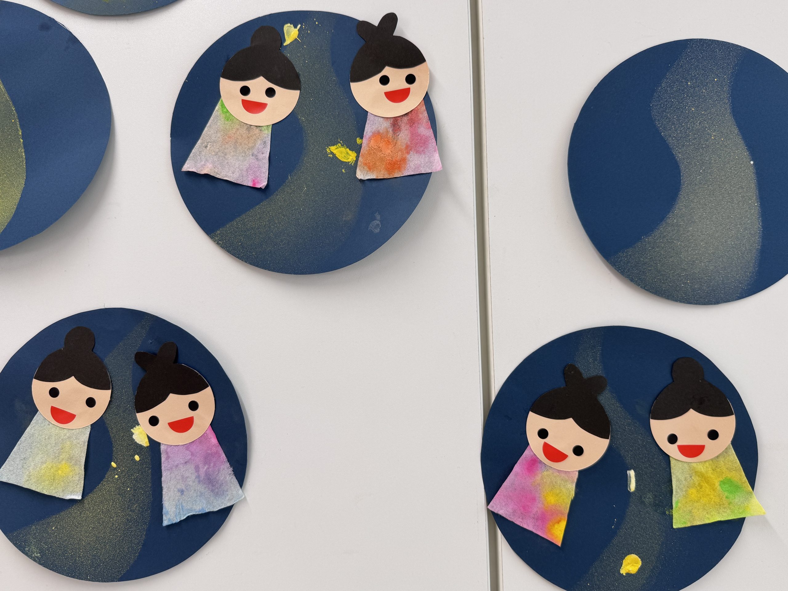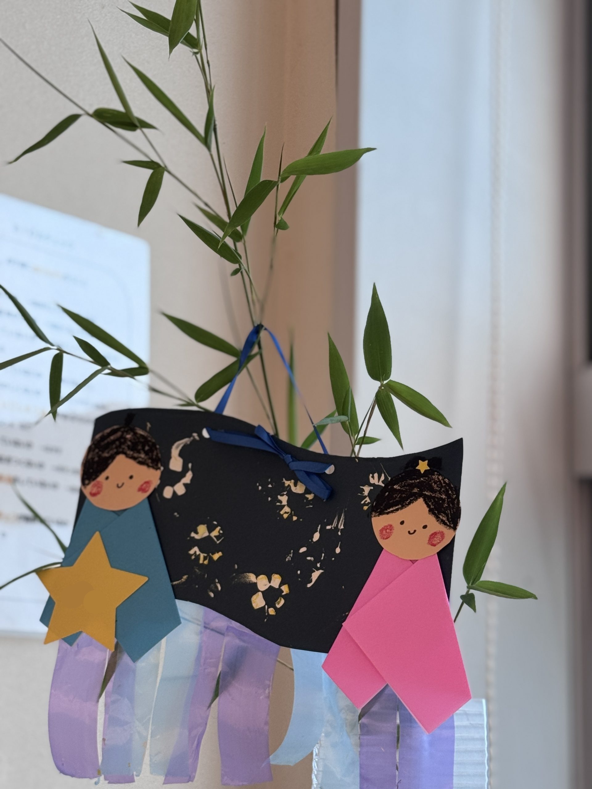 月曜日の七夕会を楽しみにしながら、各クラスお子様にあったそれぞれの技法で、かわいらしい七夕制作も完成しました!