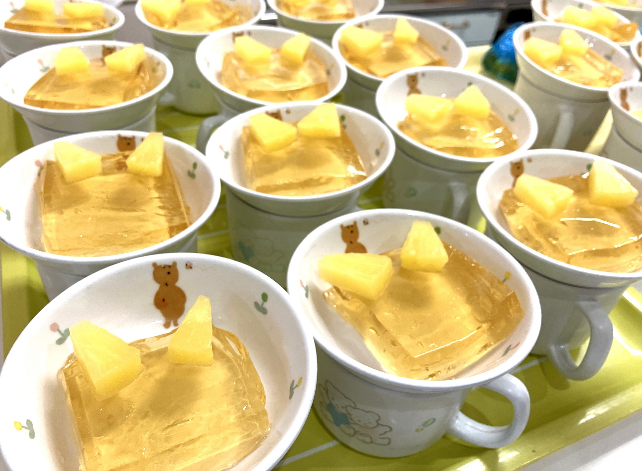 午後のおやつは鬼のフルーツゼリーをいただきました。