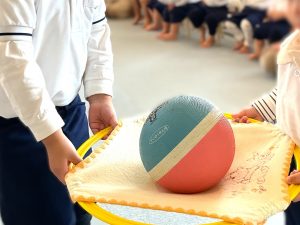 ボール運びゲームでは小さなお子様を誘い、
