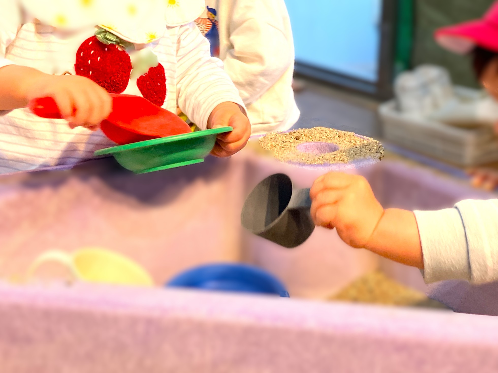 日当たりの良いテラスや室内の大きな砂場を備えています。