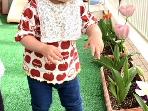 テラスでは夏はあさがお、春はチューリップをを育て、