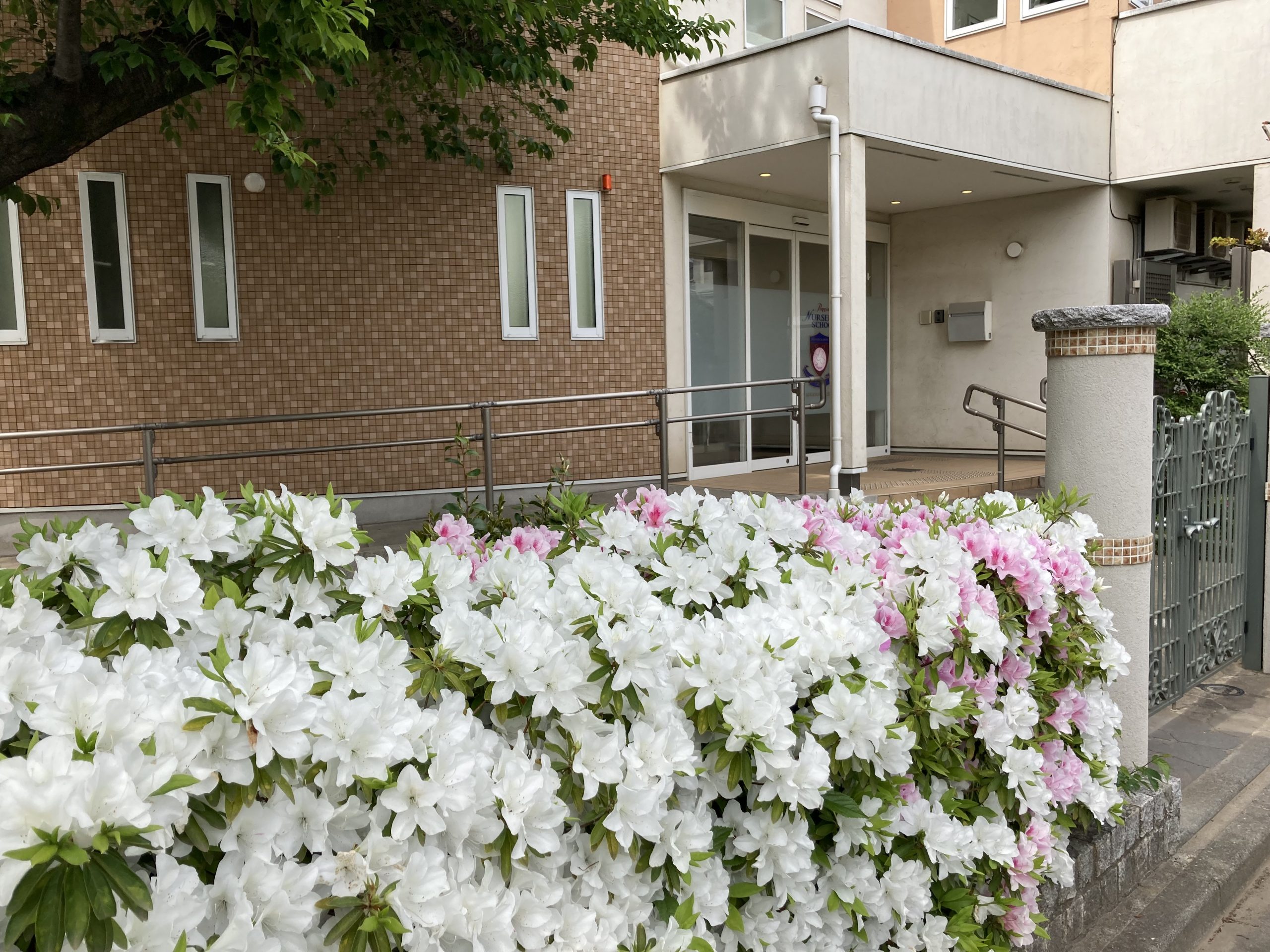 華やかな園の玄関と公園