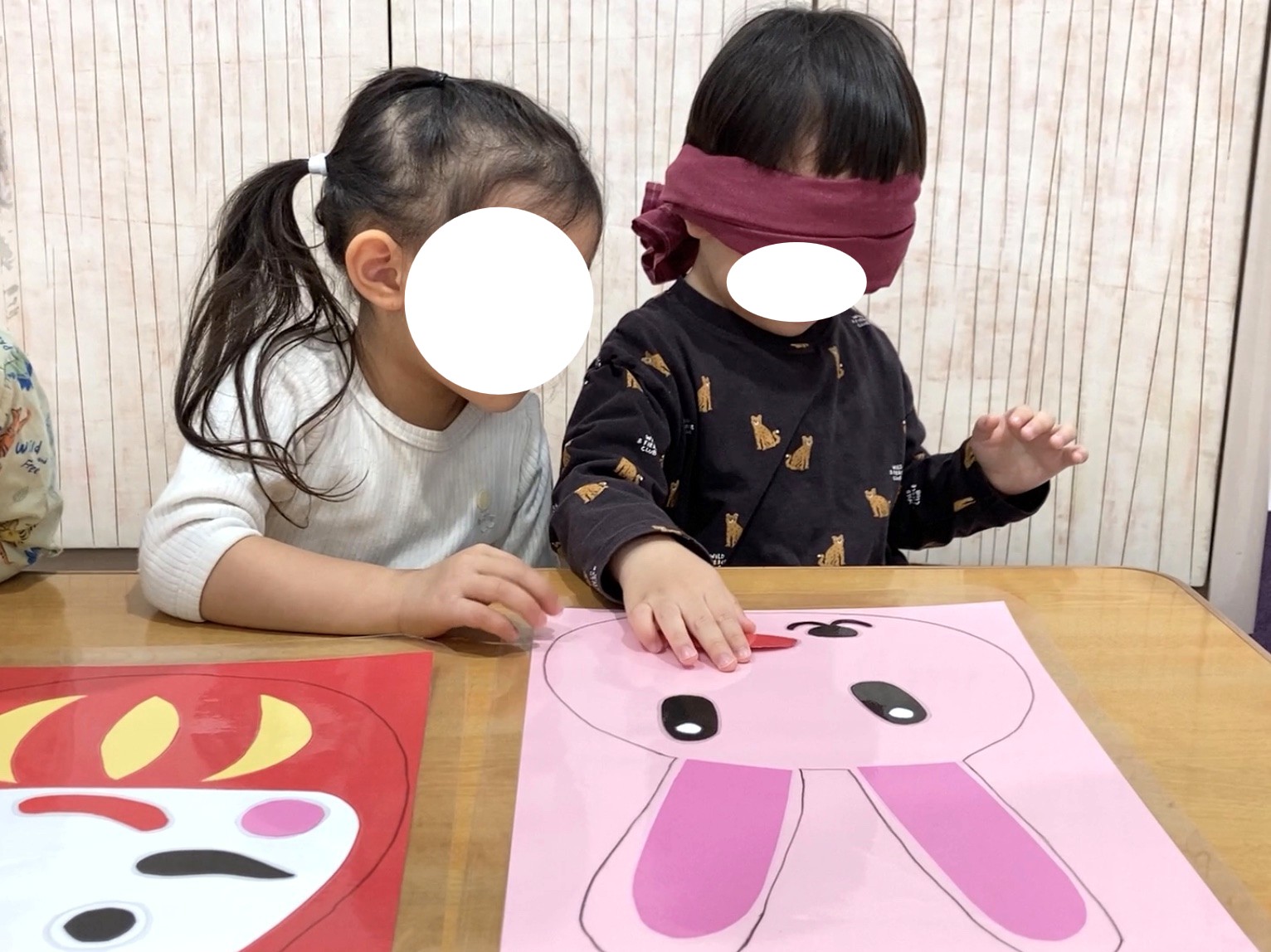 お顔のパーツをのせて完成した表情を見て楽しんでおりました😄