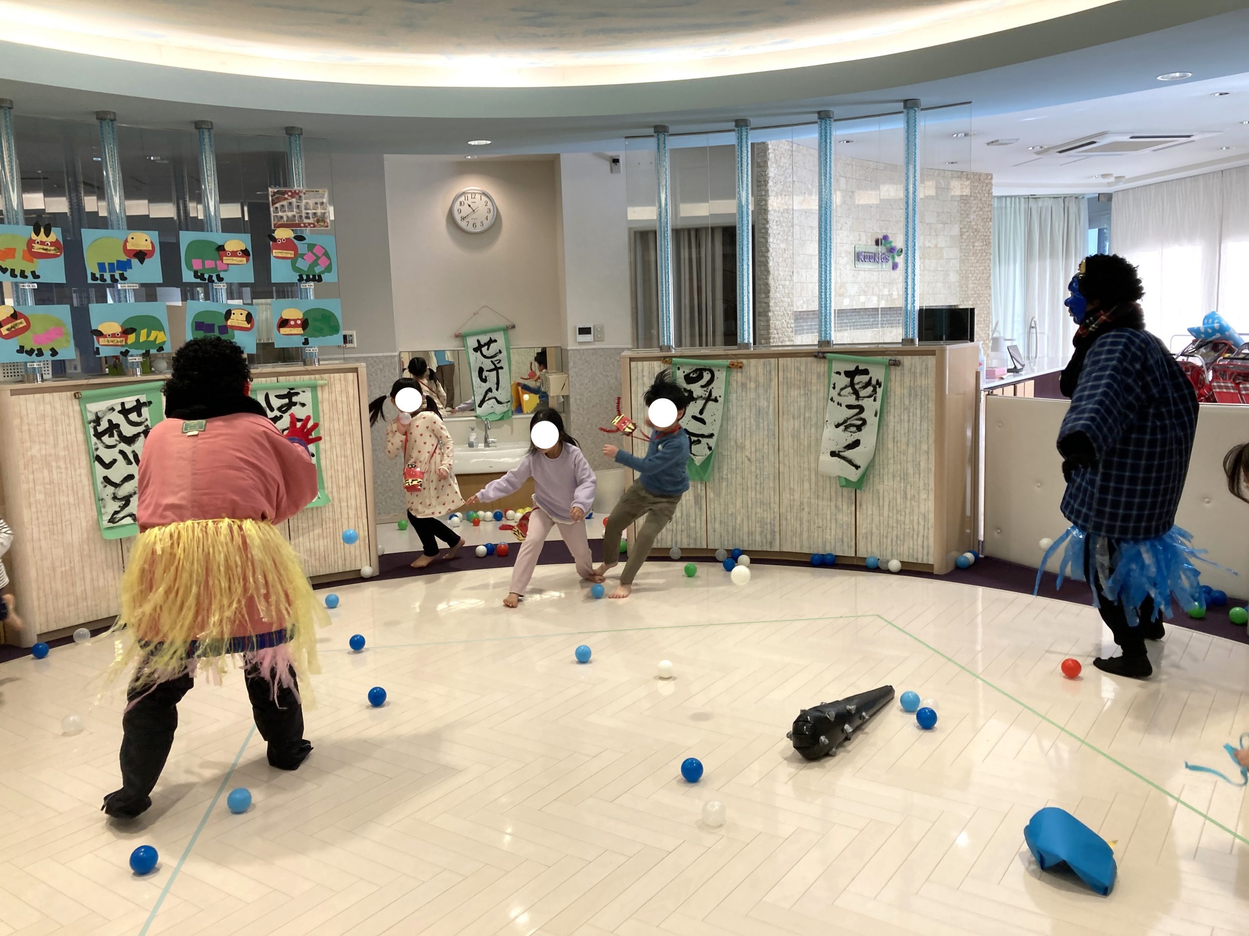 幼児クラスのみなさんは果敢に鬼に立ち向かっていました!