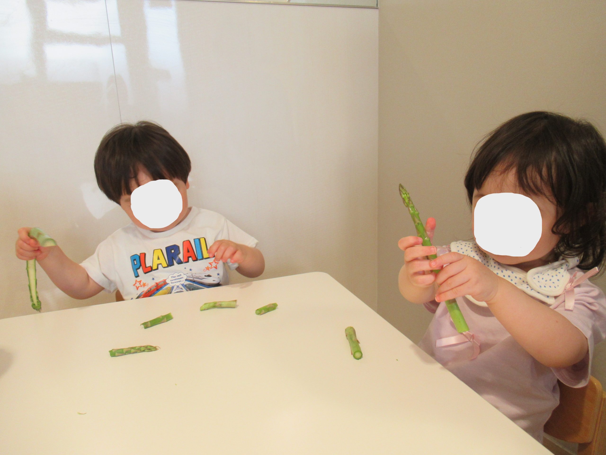 興味津々にアスパラガスの観察を楽しんでいました🎵
