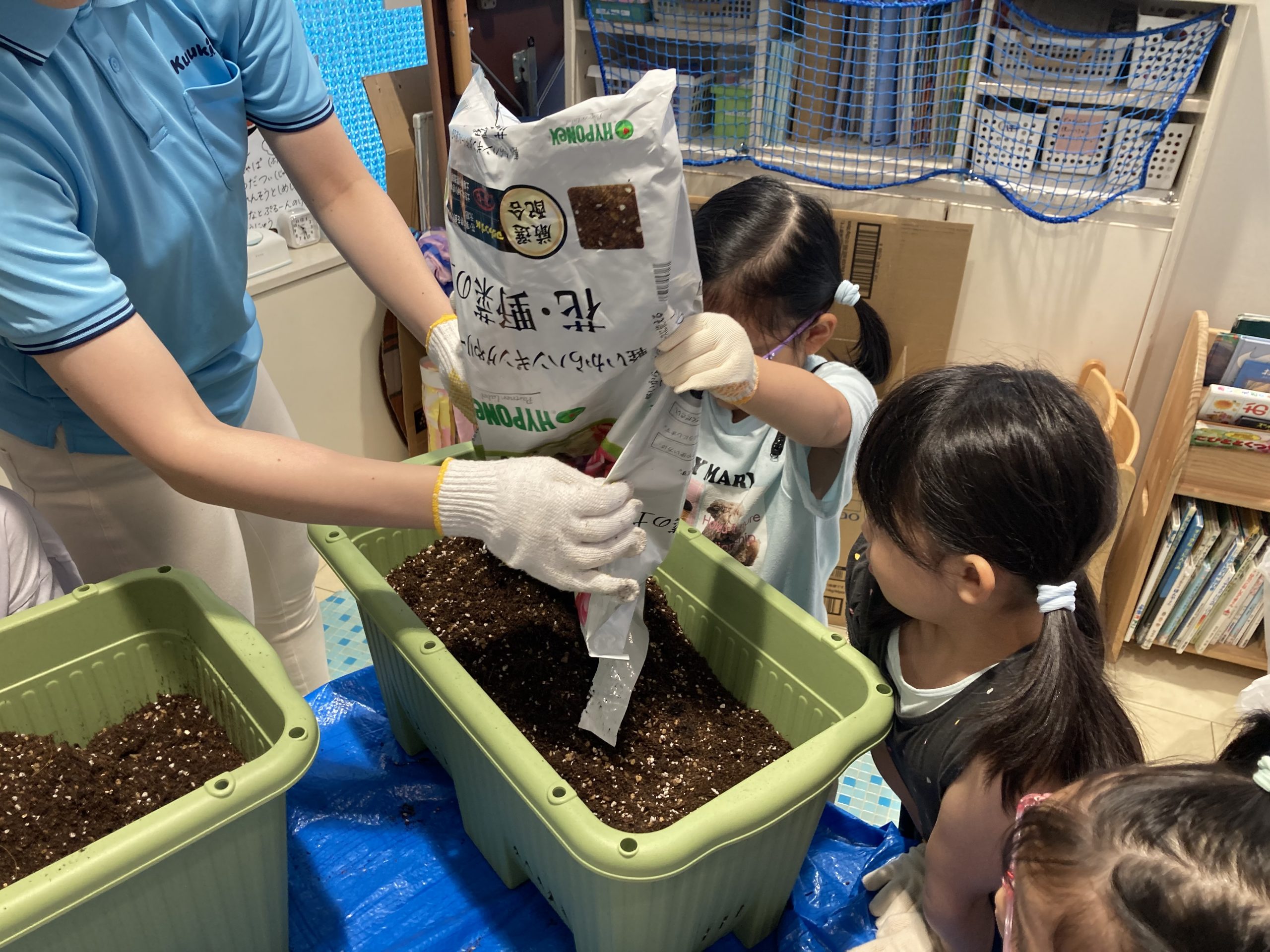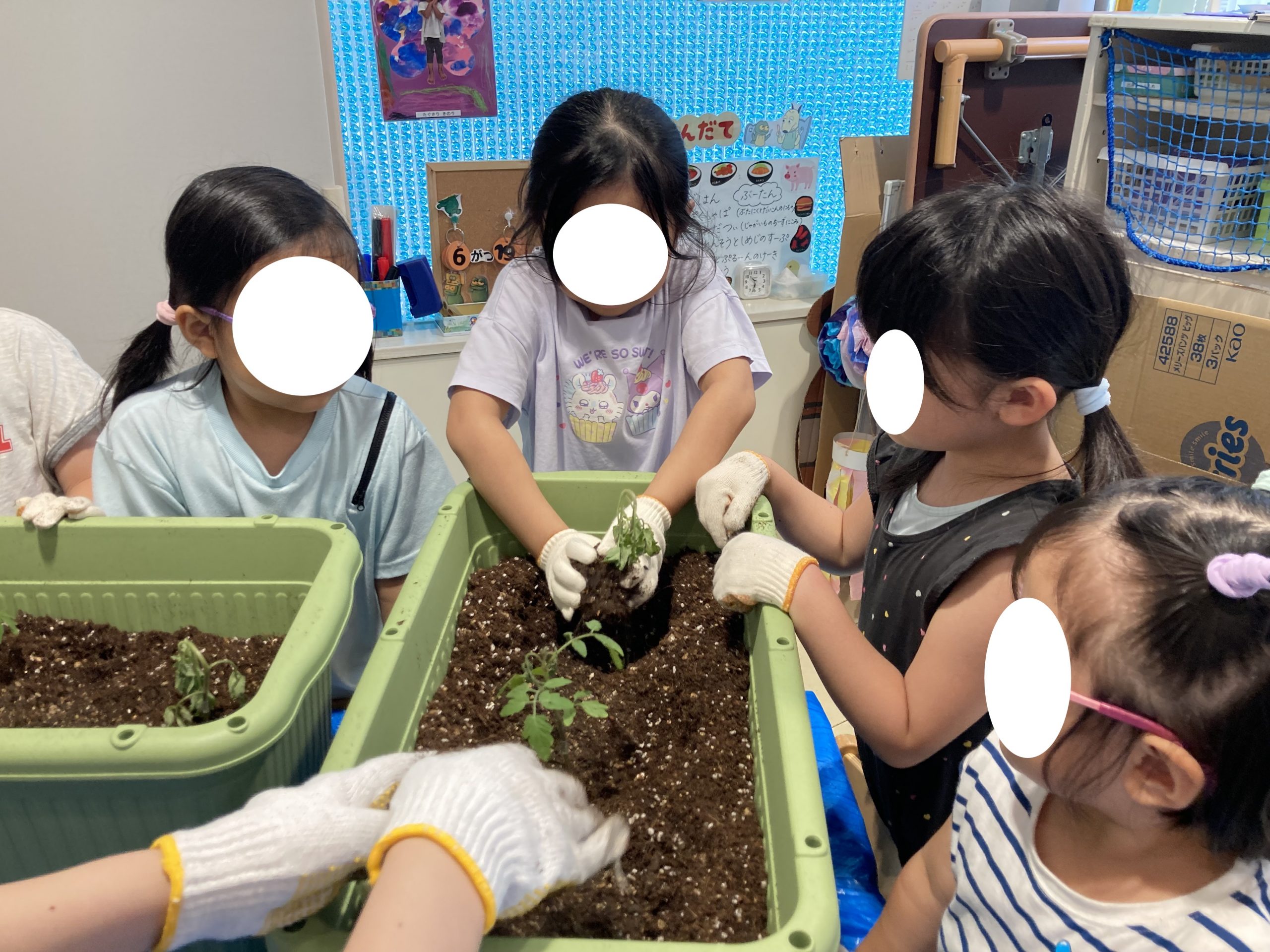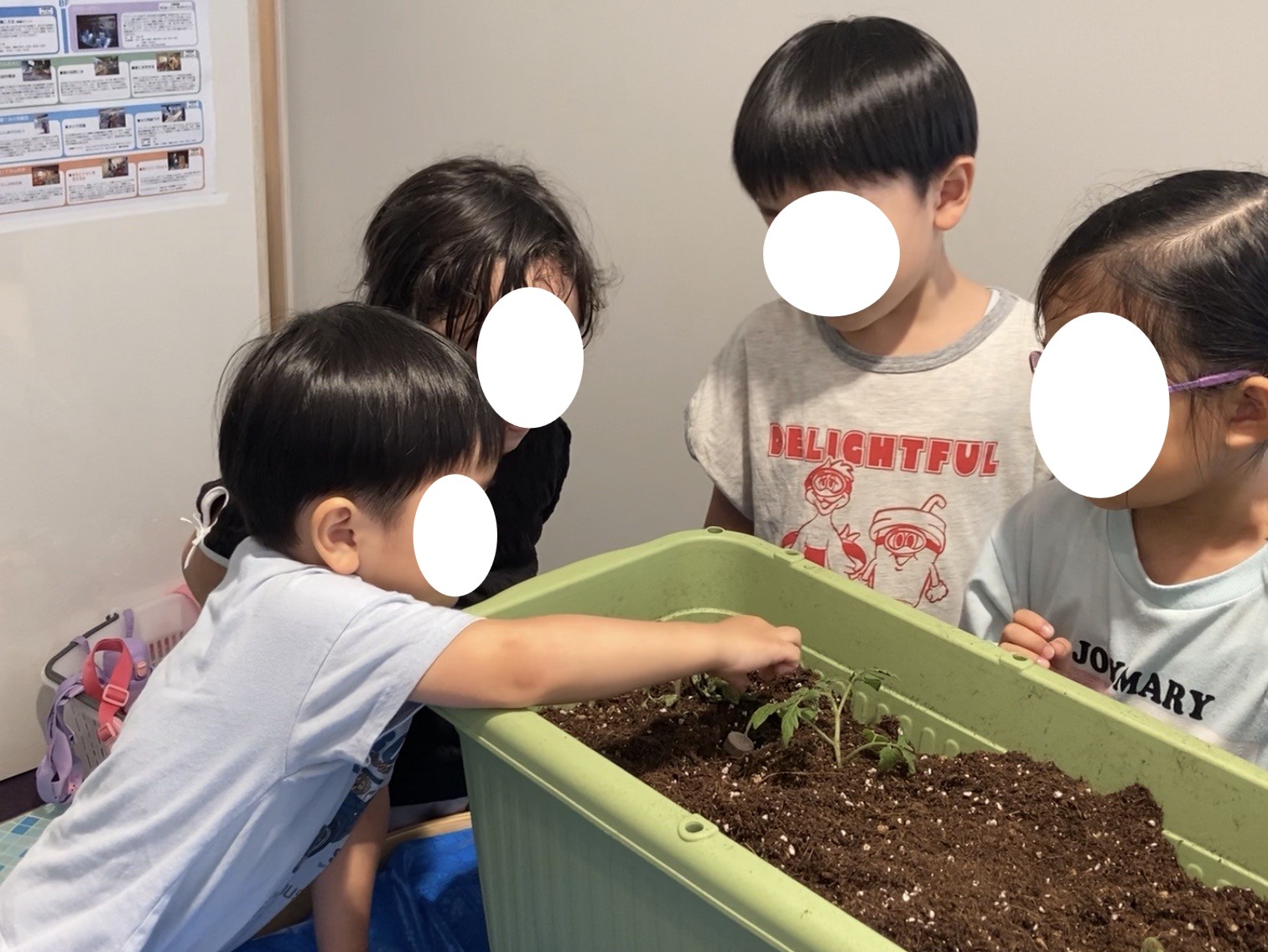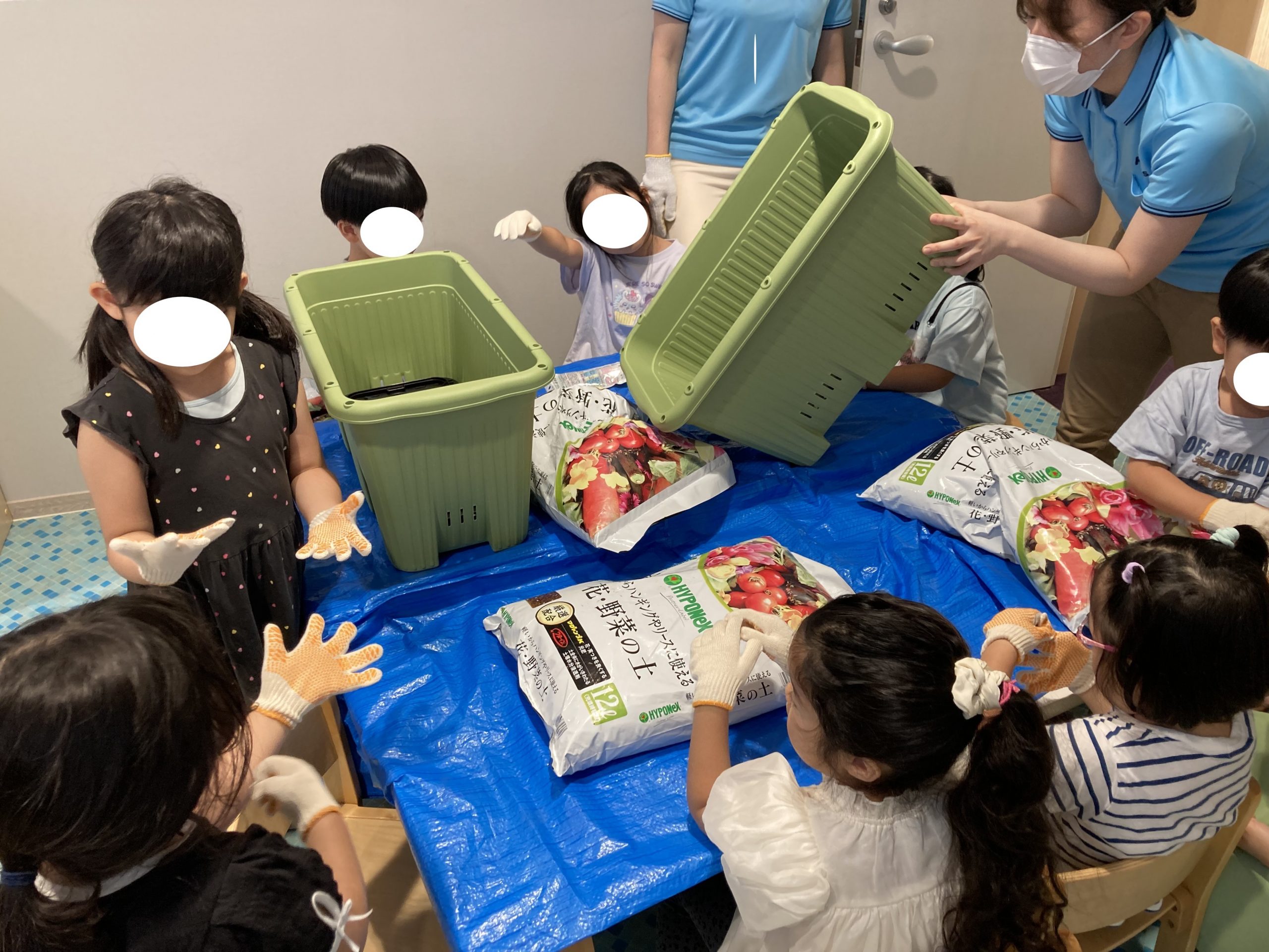 幼児クラスの皆さんにトマトの苗を植えてもらいました🌱