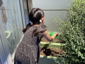 お絵描きをしていたら、「トマトちゃんにみせてあげよう!」と苗に向かって自分の描いた絵を見せてあげるお子様も。