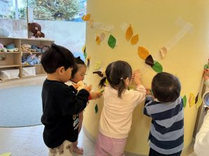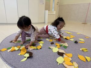 こちらは、フェルトの落ち葉で表現遊びを楽しむご様子です。