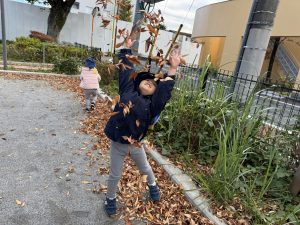お散歩では、枯れ葉遊びを思い切り楽しみました!