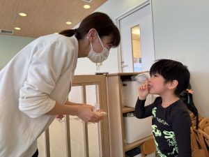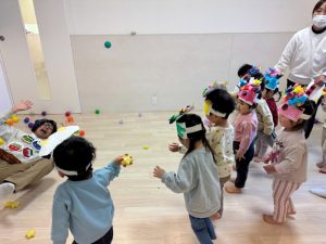 お子様たちは豆まき(ボール投げ)を行いました!