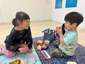 外でみんなと一緒に食べるお弁当、