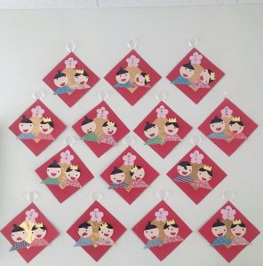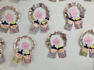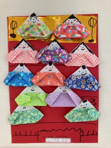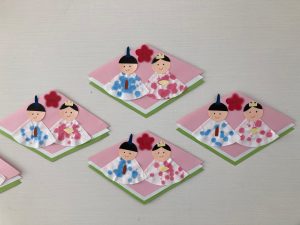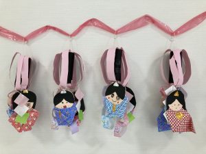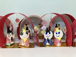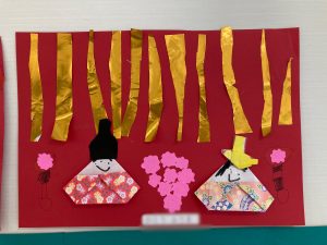 各クラスには、ひな祭りにちなんだ作品が掲示されていました。