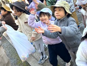 お菓子を一生懸命に受けようとワクワクしながら参加しました!