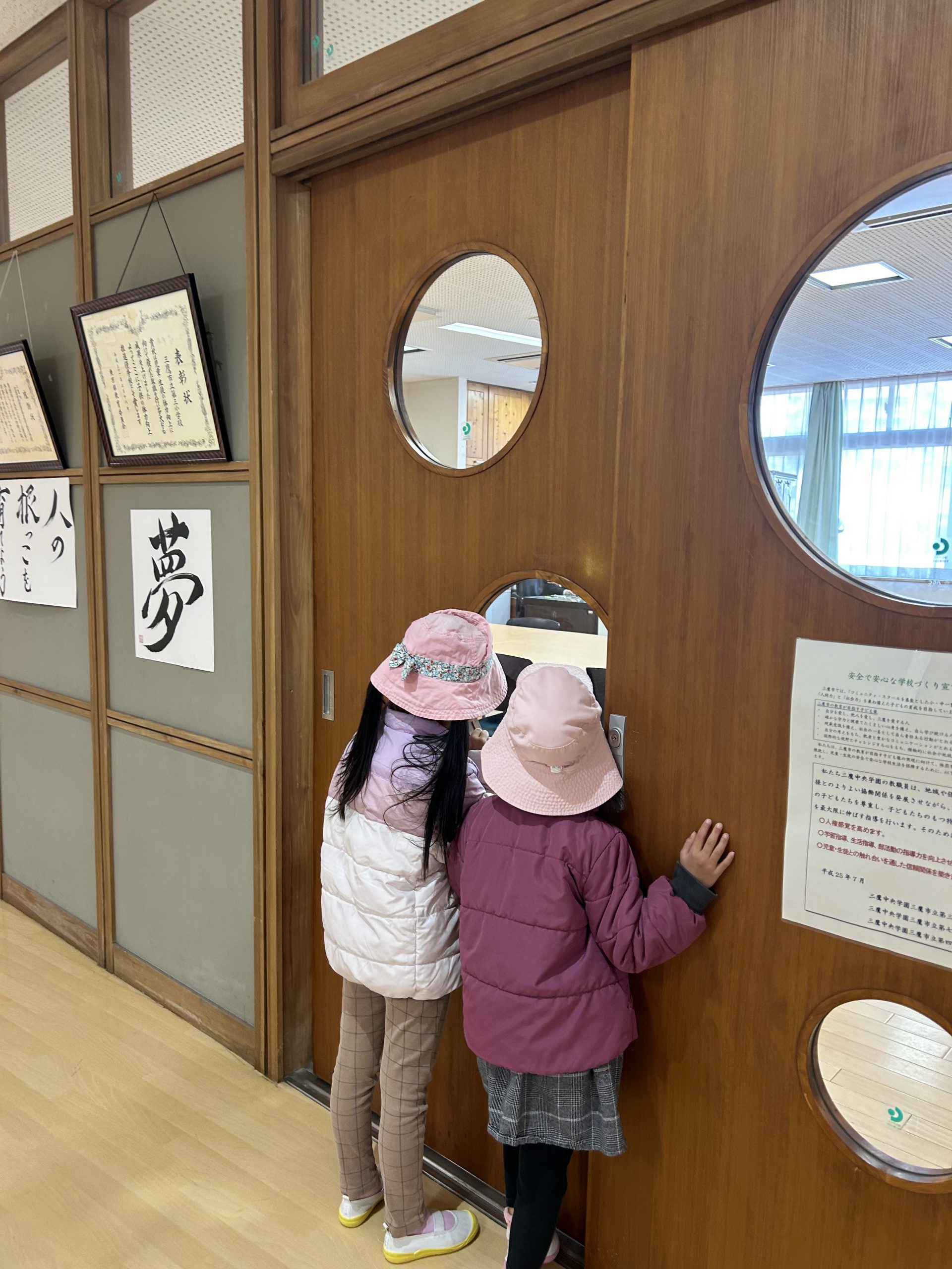 「校長先生の部屋を見たい!」と言って、 興味津々に窓から覗いている様子です♡