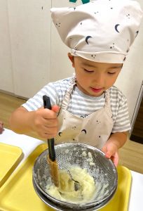 4歳児クラスはヴィシソワーズ(じゃが芋の冷製スープ)作りです!