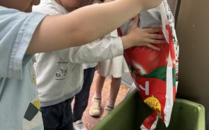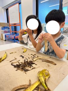 給食で使用したバナナの皮を給食の先生からわけてもらい、
