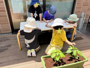 お子様たちは、芽の成長を喜んで観察しているのですが、