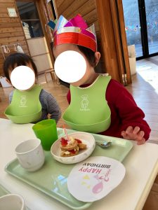 その後は、待ちに待ったおやつの誕生日ケーキです。