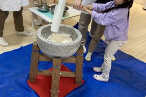 もちつきを一人一人体験してもらいました。