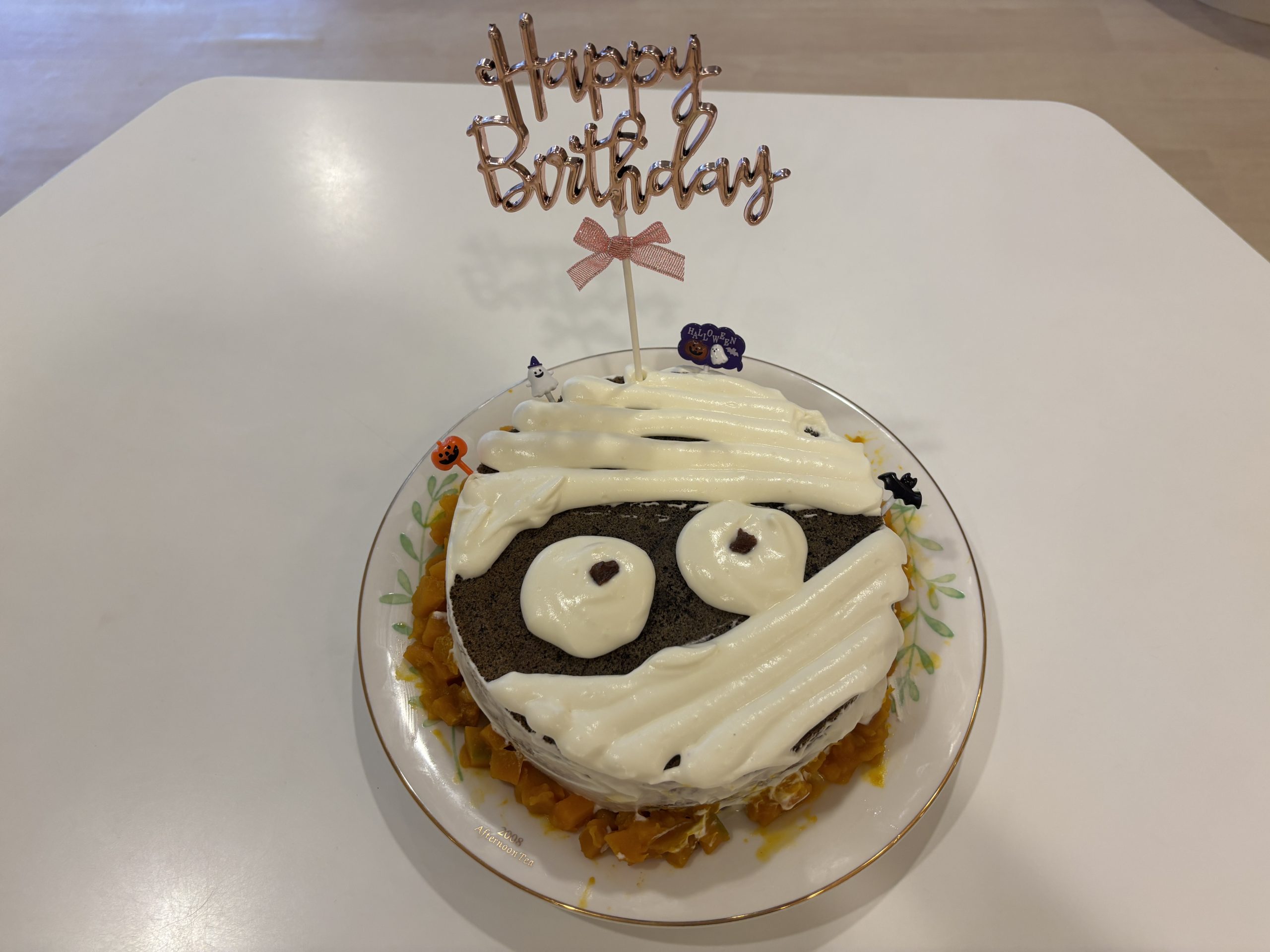 園内の装飾もハロウィーン仕様に変わり、 お誕生ケーキもハロウィーンにちなんだ特別なデザインに。