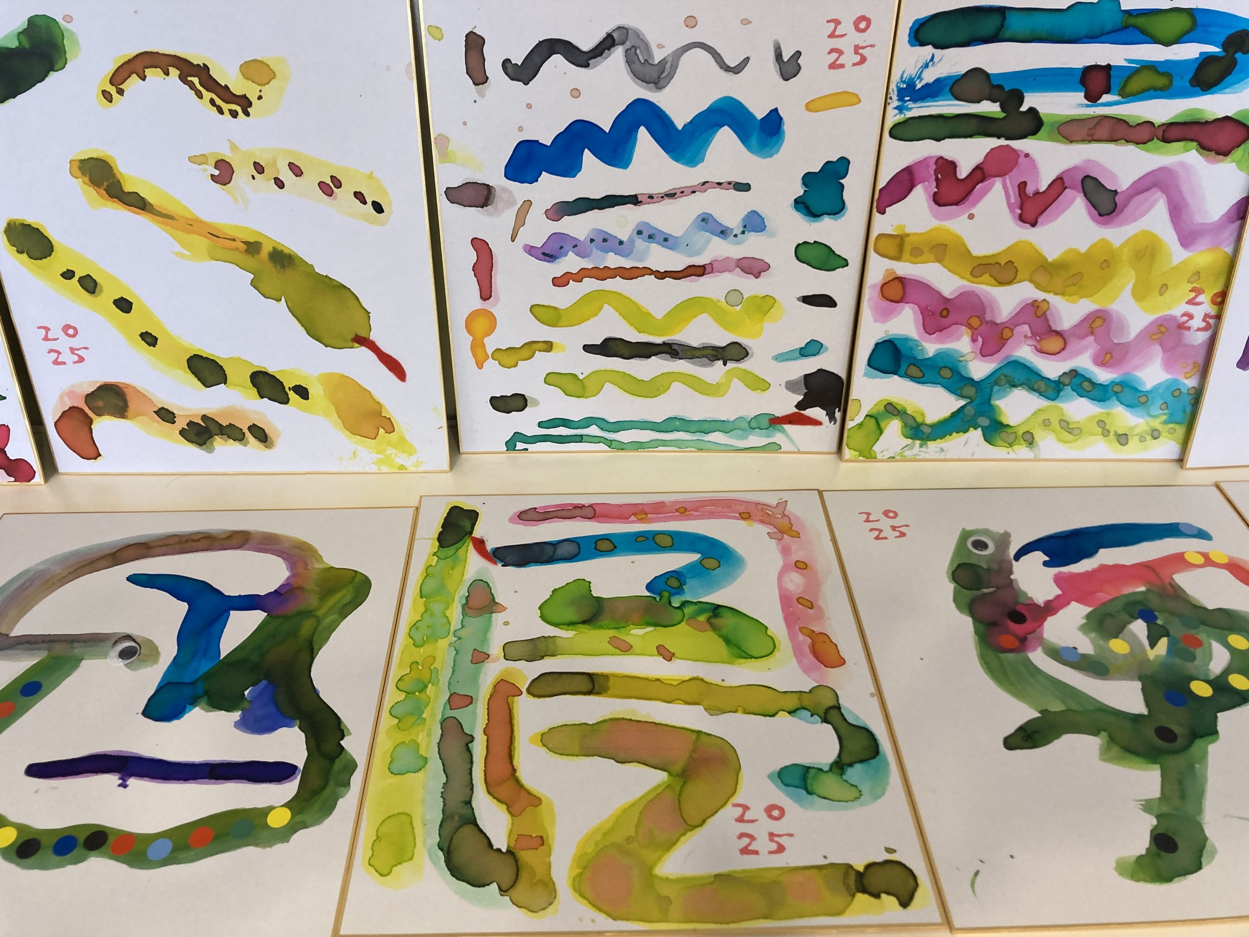 「ヘビ」を筆とインクで色紙に描きました。