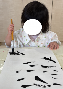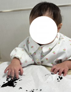 スノードロップクラス(0歳児)は、筆や指を使って自由に、