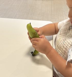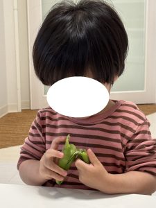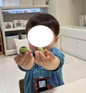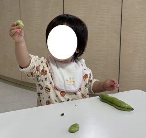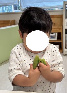 5月の食育活動では、「そら豆のさやむき」を実施いたしました。