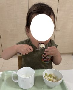 その後、栄養士がそら豆入りのチャーハンを提供。