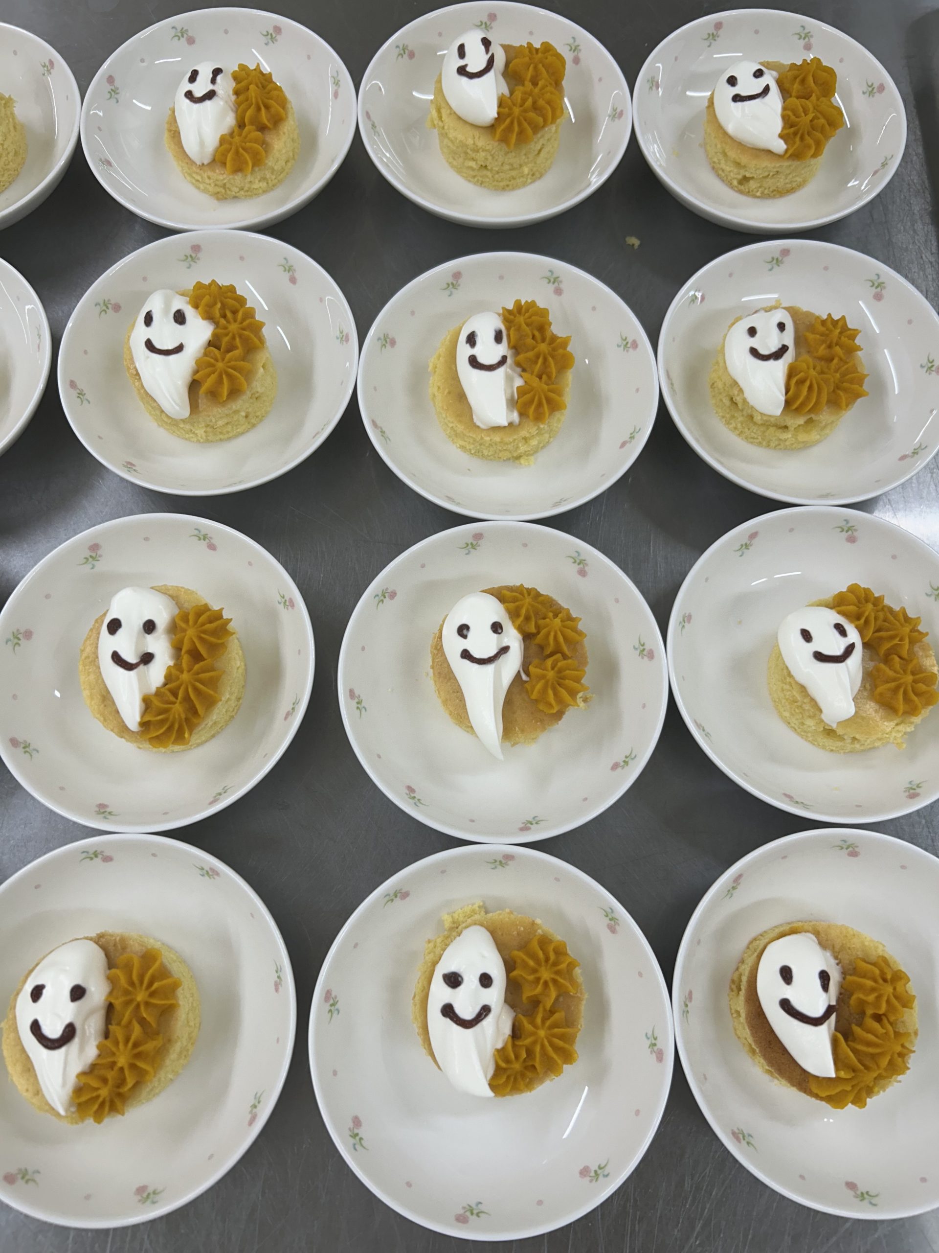 今月のお誕生日ケーキは、 10月31日のハロウィンにちなんで 「おばけ」がモチーフです。