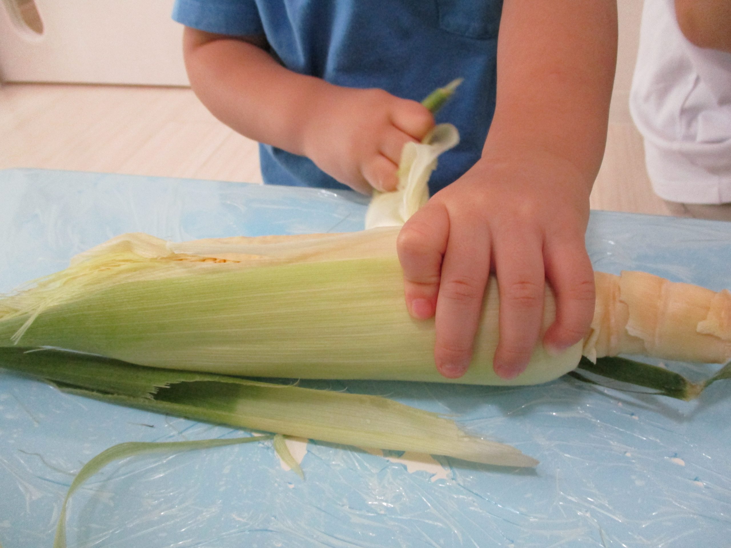 2023.08.01ブログ 【食育】トウモロコシの皮むき