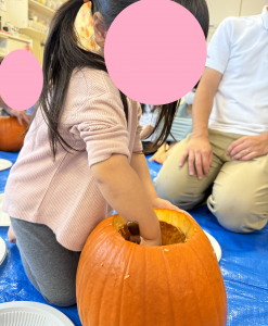 カボチャのくり抜きを行いました。