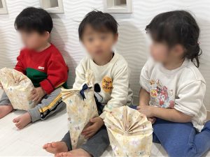 プレゼントを受け取るお子様たち。
