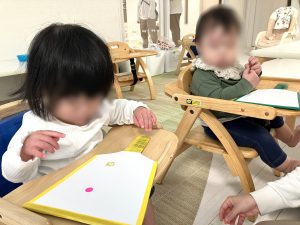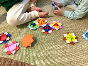 次は折り紙で作ったカラフルなコマで遊びました🌀