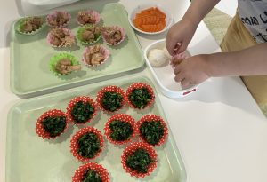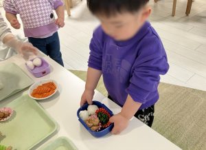 自分たちでお弁当箱に詰めるお弁当作り体験に挑戦しました!