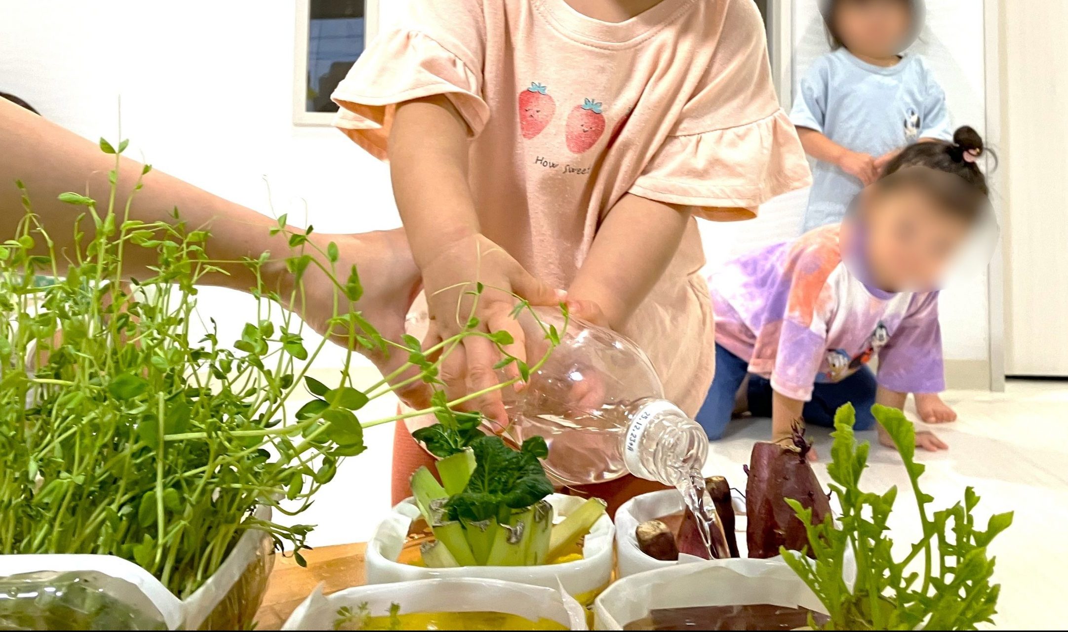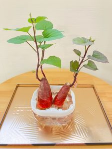 さつま芋の切れ端と、伸びの良い豆苗を準備しました。