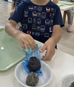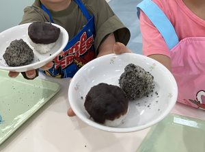 中秋の名月にちなんで、食育活動でおはぎを作りました。