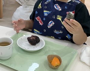 自分で作ったおはぎを、おやつの時間に美味しくいただきました!