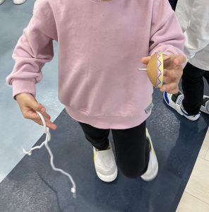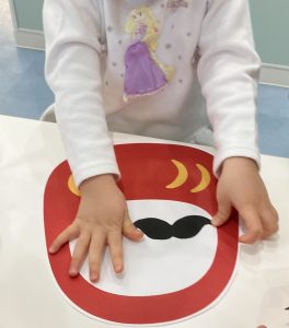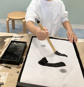 その後、各クラスで伝承遊び(福笑い、書き初め、こま、だるま落としなど)を行いました。