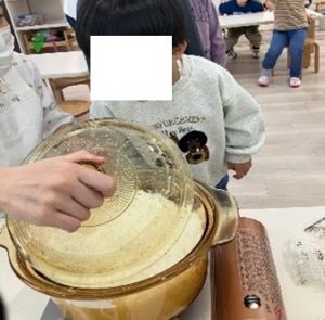 普段食べているお米がどのように炊けるのかを観察しました。