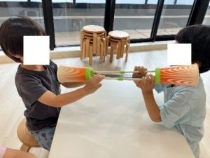 低い音・高い音の鳴らし方を学び音の変化を確かめていました。