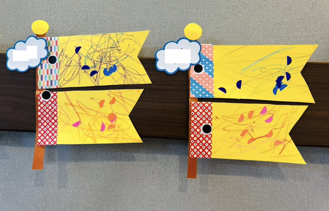 小さな小さな足形をとり、こいのぼりのうろこを表現しました👣