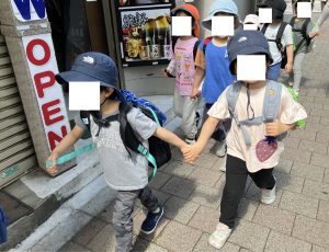 保育園を出発し、みんなで駅まで歩いて行きました。